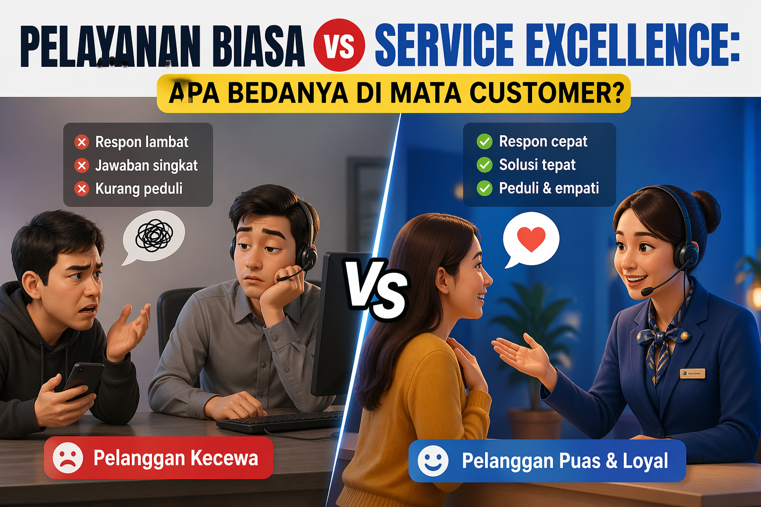 Pelayanan Biasa vs Service Excellence – Di tengah persaingan bisnis yang semakin ketat di tahun 2025–2026, kualitas produk saja sudah tidak cukup. Banyak perusahaan memiliki produk serupa, harga bersaing, bahkan strategi marketing yang mirip. Namun, satu hal yang sering menjadi pembeda utama di mata pelanggan adalah bagaimana mereka dilayani. Di sinilah perbedaan antara pelayanan biasa dan service excellence menjadi sangat krusial.